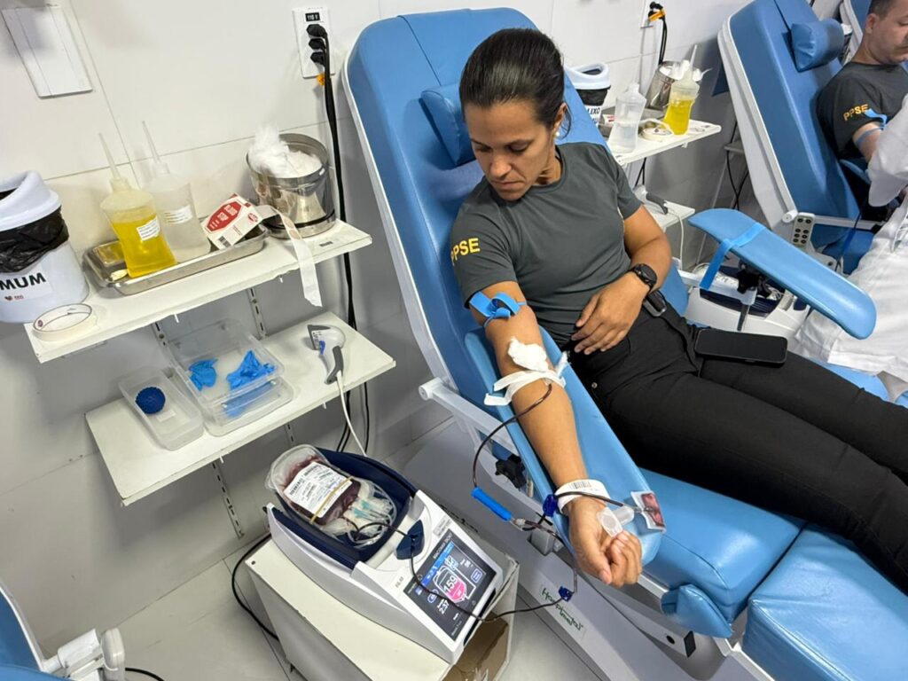 Nesta sexta-feira, 29, 15 alunos do Curso de Formação da Polícia Penal participaram de uma ação solidária no Instituto de Hematologia e Hemoterapia de Sergipe (IHHS), em Aracaju. A atividade, que teve como objetivo reforçar o estoque sanguíneo da unidade, também fez alusão ao Dia Nacional do Voluntariado, celebrado no dia anterior.