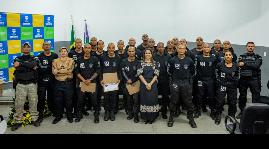 Na manhã de quinta-feira, 5, a Secretaria de Estado da Justiça e de Defesa do Consumidor (Sejuc) realizou na Escola de Gestão Penitenciária (Egesp) a formatura da primeira turma do Curso de Intervenção Rápida em Recinto Carcerário (CIRRC). No total, foram 21 policiais penais dos estados de Sergipe, Alagoas, Amapá e Maranhão que concluíram o curso, recebendo ao final da solenidade os certificados e brevês com título de interventores.