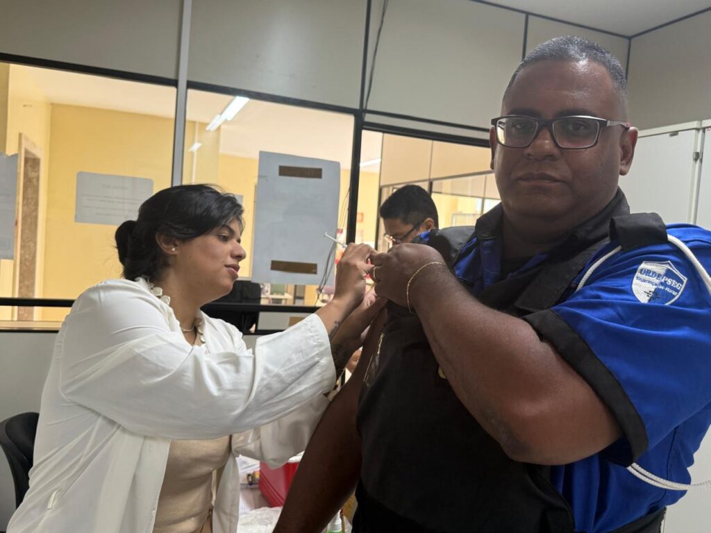 A Secretaria de Estado da Justiça e de Defesa do Consumidor (Sejuc) iniciou, nesta quinta-feira, 3, uma importante campanha de vacinação contra a gripe, voltada para os servidores que atuam nas unidades administrativas do órgão. A ação é realizada pela coordenação de saúde do sistema prisional sergipano e tem como principal objetivo, prevenir o surgimento e a disseminação de síndromes gripais, garantindo um ambiente institucional mais saudável e seguro.
