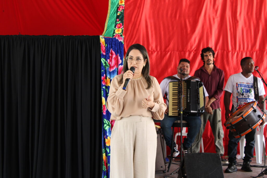 Logo em seguida, foi a vez da apresentação do grupo de teatro de bonecos Mamulengo Cheiroso, fruto de parceria com o Ministério Público do Trabalho (MPT). Com o tema “Quem vê cara, não vê coração. Trabalho sim, escravidão não!”, o grupo abordou, de forma lúdica, sobre o trabalho escravo contemporâneo.