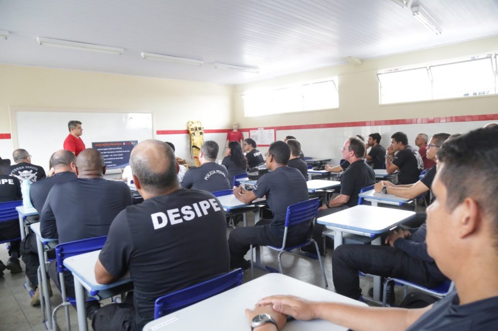 O curso tem a duração de 8h por disciplina, que pode ser dividido em duas partes. “Estou passando conhecimento na área de atendimento pré-hospitalar, também conhecida como primeiros socorros, que visa preparar o colaborador, profissional, agente prisional para que em uma situação de emergência, que precisa prestar atendimento a uma vítima, eles possam fazer um atendimento de forma eficaz e tenha sucesso no atendimento”, disse o subtenente e instrutor do Curso Sérgio Fonseca Santos
